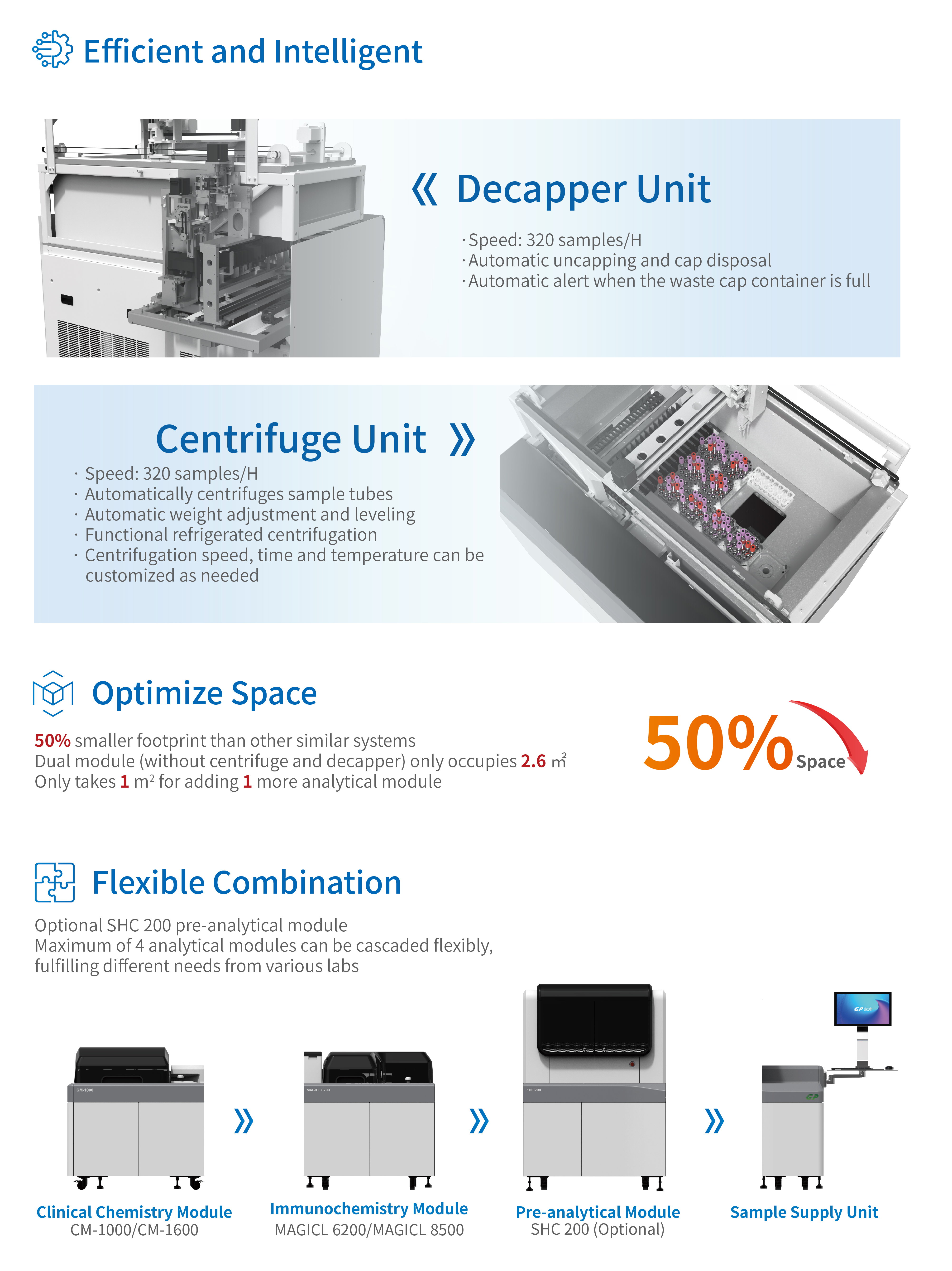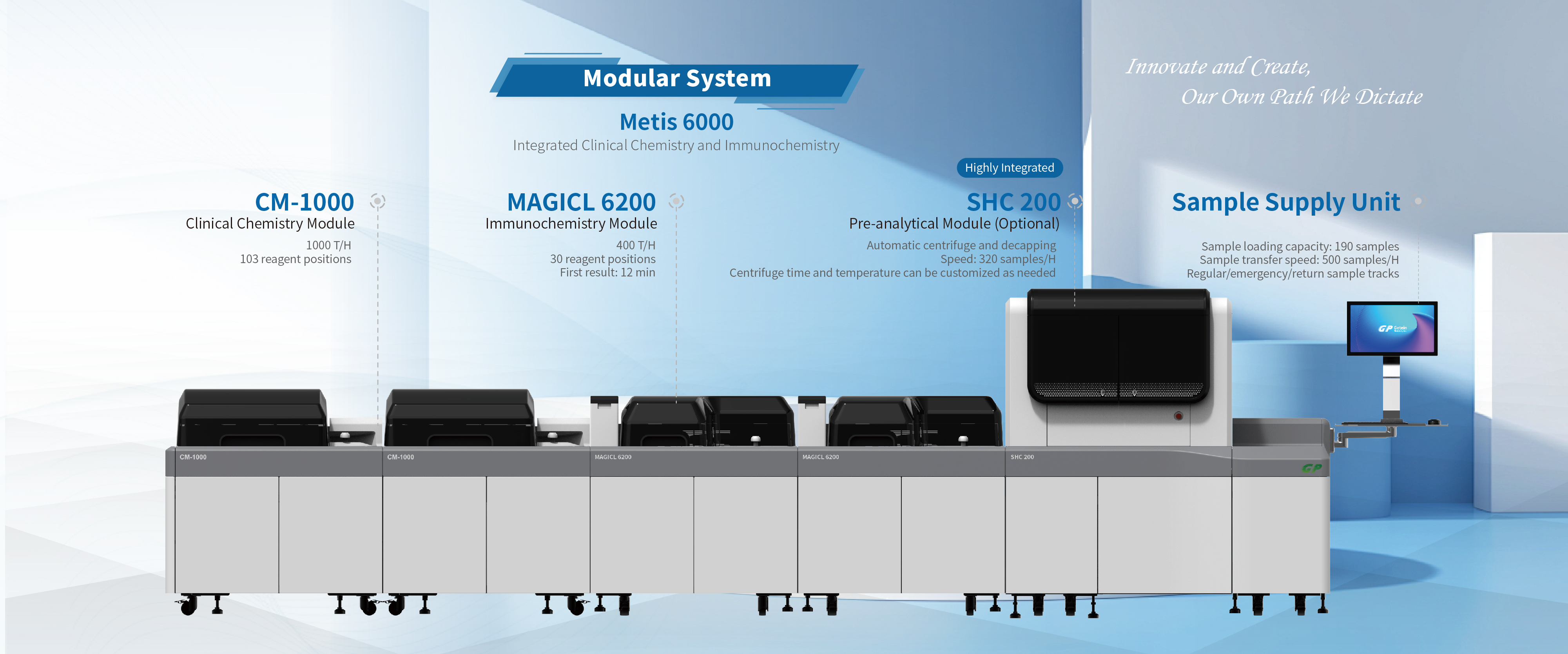 In order to meet the needs of clinical laboratories for automation, informatization, and intelligent solutions, Getein grandly launched our modular system that integrates clinical chemistry and immunochemistry with small footprint and flexibility.